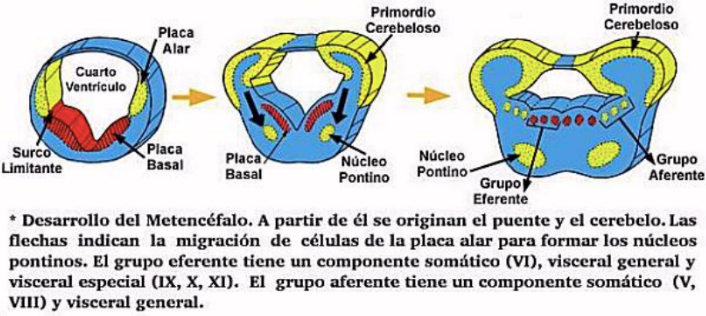 • Se origina de una vesícula común con el puente (metencéfalo, placa alar), en la cual, por dorsal, se levantan dos labios, llamados labios rómbicos, los que corresponderán a los primeros esbozos de cerebelo.