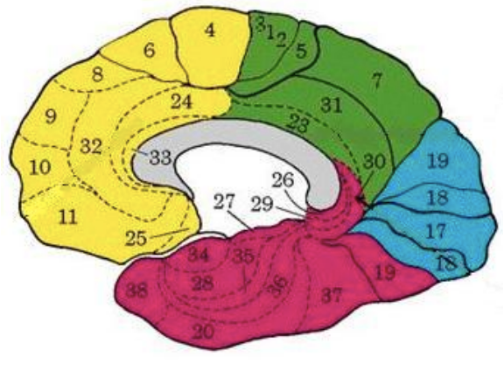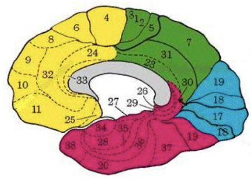 Brodman en 1878, realizó un mapeo histológico del córtex cerebral, dividiéndolo de acuerdo a la citoarquitectura en 52 áreas diferentes. Cada área tiene una citoarquitectura o distribución neuronal característica. Así, se comprobó lo siguiente: